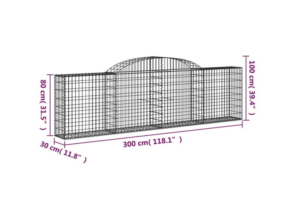 Klenuté gabionové koše 30ks 300x30x80/100 cm pozinkované železo 3146519