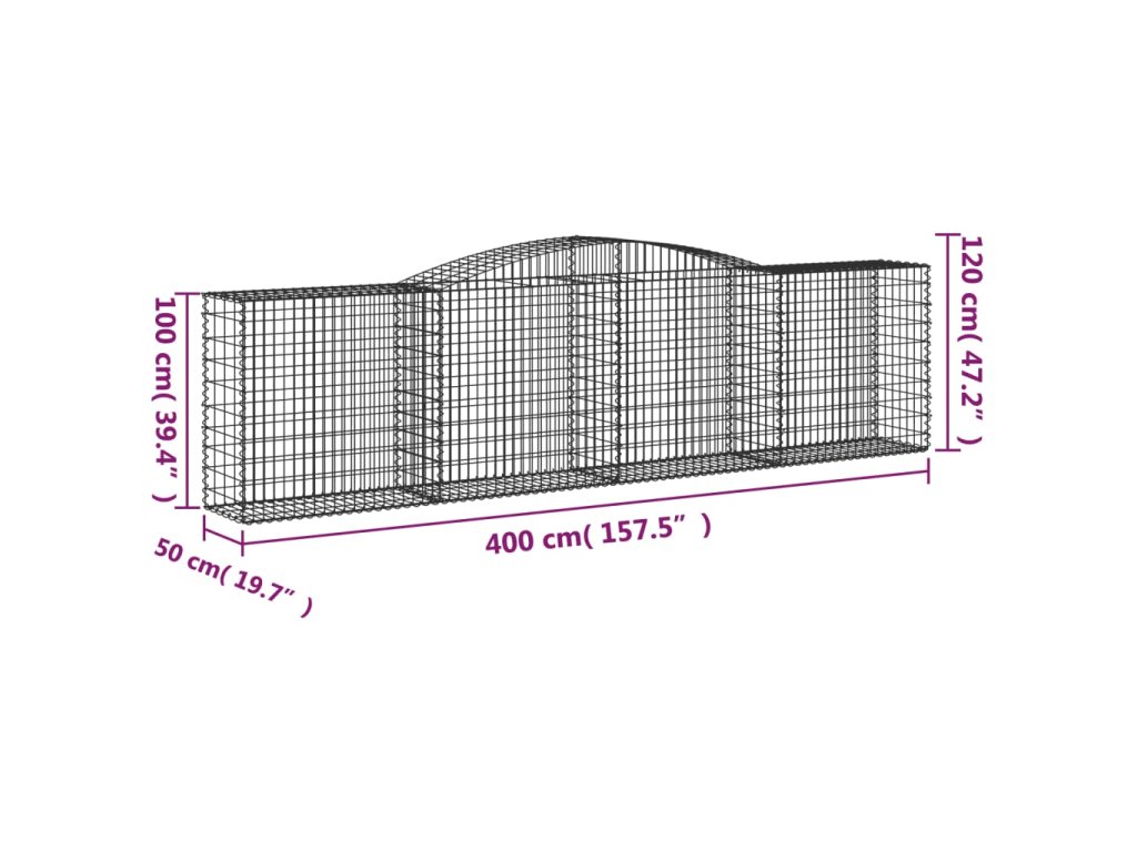 Klenuté gabionové koše 4 ks 400x50x100/120cm pozinkované železo 3146998