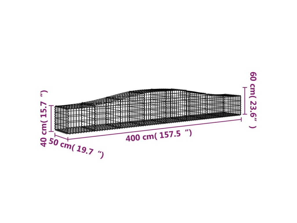 Klenuté gabionové koše 4 ks 400x50x40/60 cm pozinkované železo 3145919