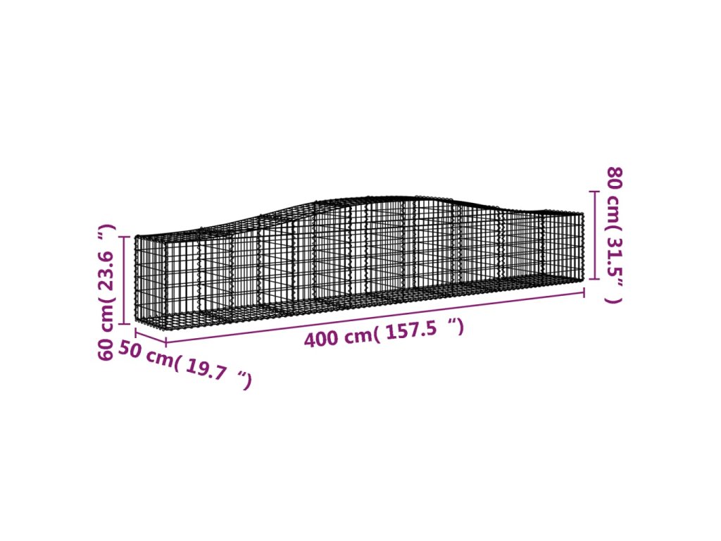 Klenuté gabionové koše 5 ks 400x50x60/80 cm pozinkované železo 3145933
