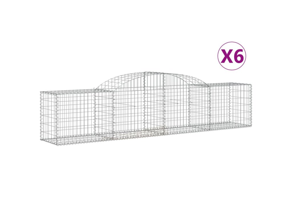 Klenuté gabionové koše 6 ks 300x50x60/80 cm pozinkované železo 3146669