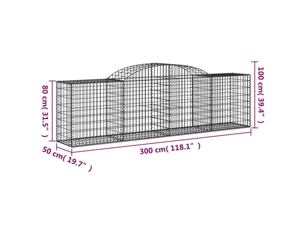 Klenuté gabionové koše 6 ks 300x50x80/100 cm pozinkované železo 3146687