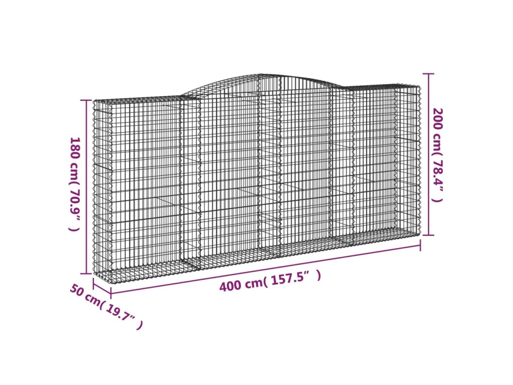 Klenuté gabionové koše 6 ks 400x50x180/200cm pozinkované železo 3147052