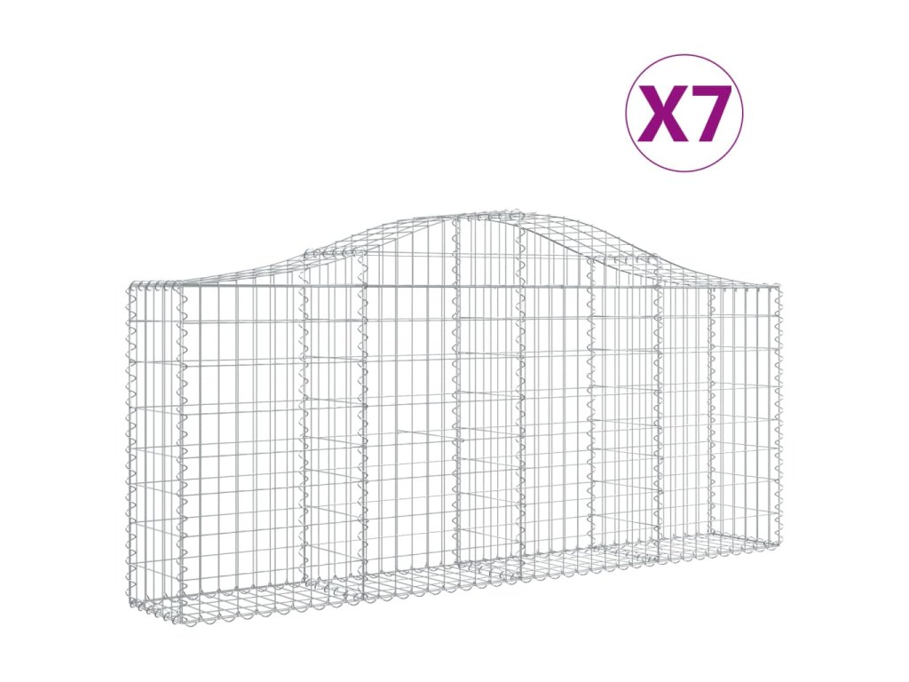 Klenuté gabionové koše 7 ks 200x30x80/100 cm pozinkované železo 3145414