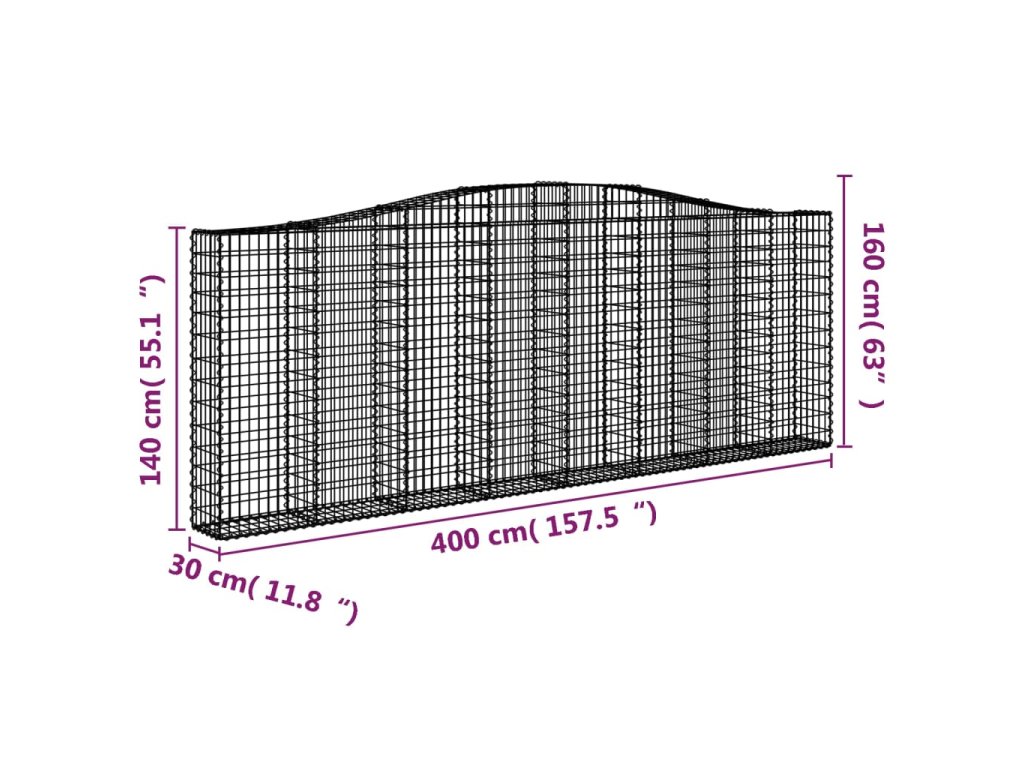 Klenuté gabionové koše 7 ks 400x30x140/160cm pozinkované železo 3145857