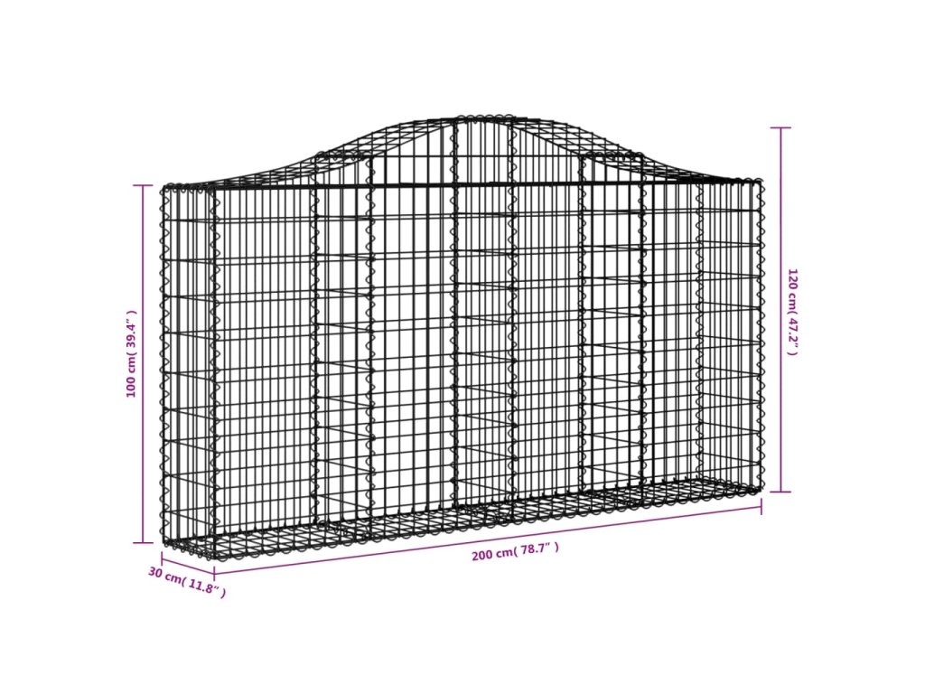 Klenuté gabionové koše 8 ks 200x30x100/120cm pozinkované železo 3145436