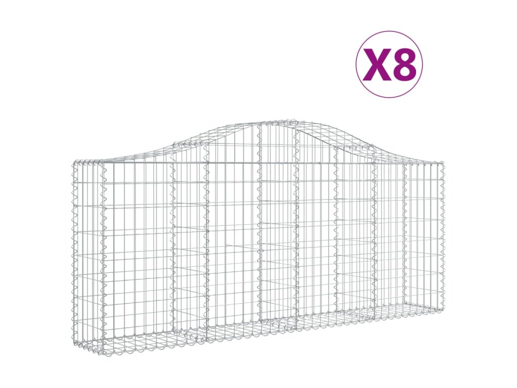 Klenuté gabionové koše 8 ks 200x30x80/100 cm pozinkované železo 3145415