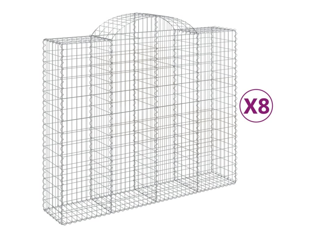 Klenuté gabionové koše 8 ks 200x50x160/180cm pozinkované železo 3146389