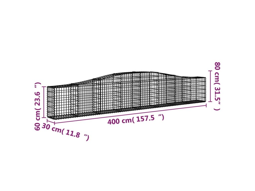 Klenuté gabionové koše 8 ks 400x30x60/80 cm pozinkované železo 3145806