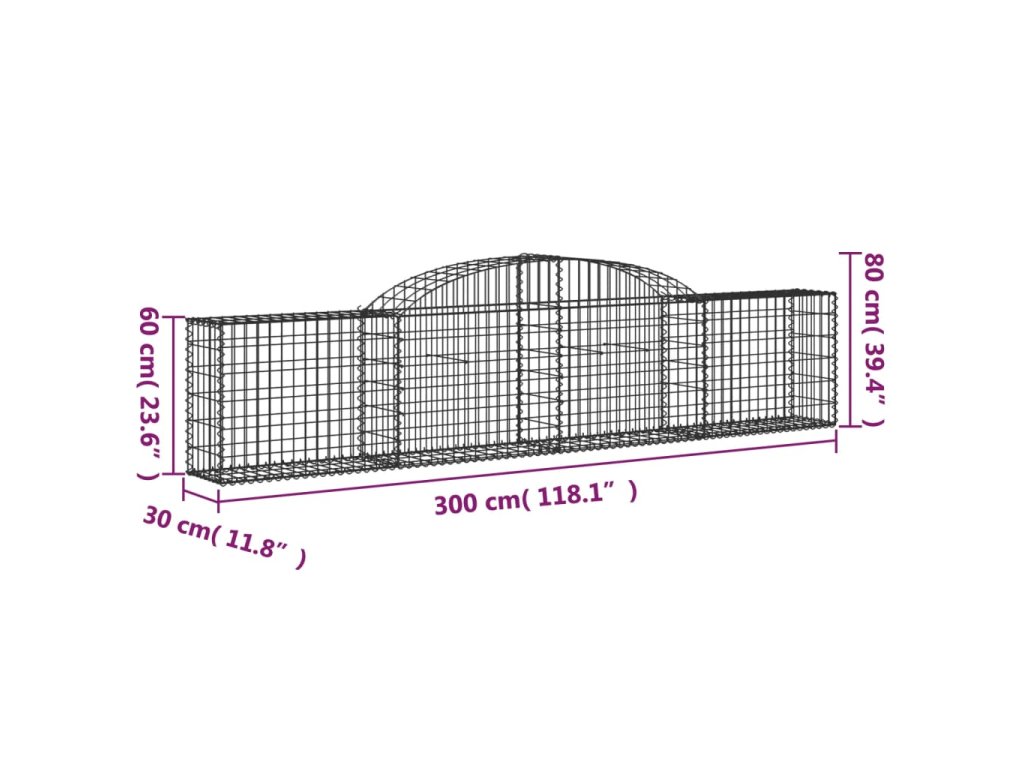 Klenuté gabionové koše 9 ks 300x30x60/80 cm pozinkované železo 3146492