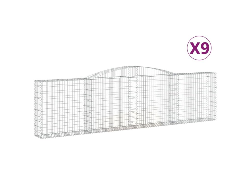 Klenuté gabionové koše 9 ks 400x30x100/120cm pozinkované železo 3146873