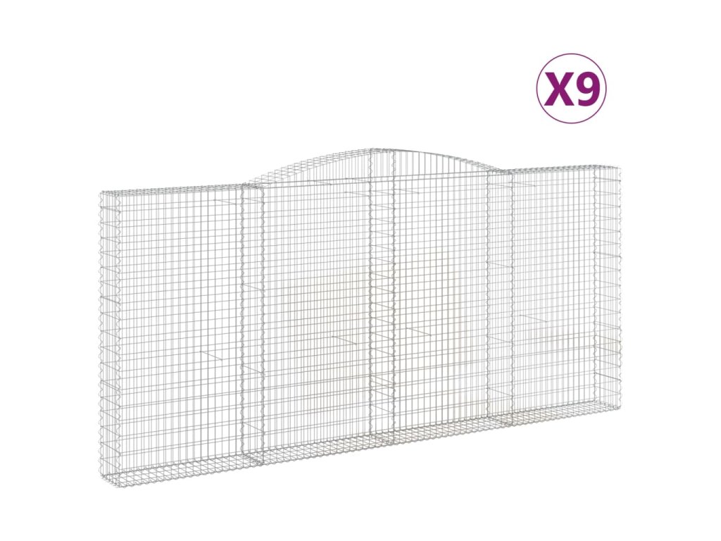 Klenuté gabionové koše 9 ks 400x30x180/200cm pozinkované železo 3146925