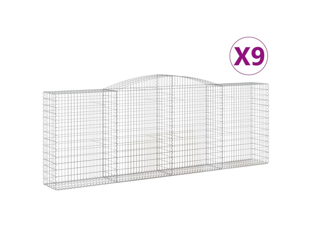 Klenuté gabionové koše 9 ks 400x50x140/160cm pozinkované železo 3147029