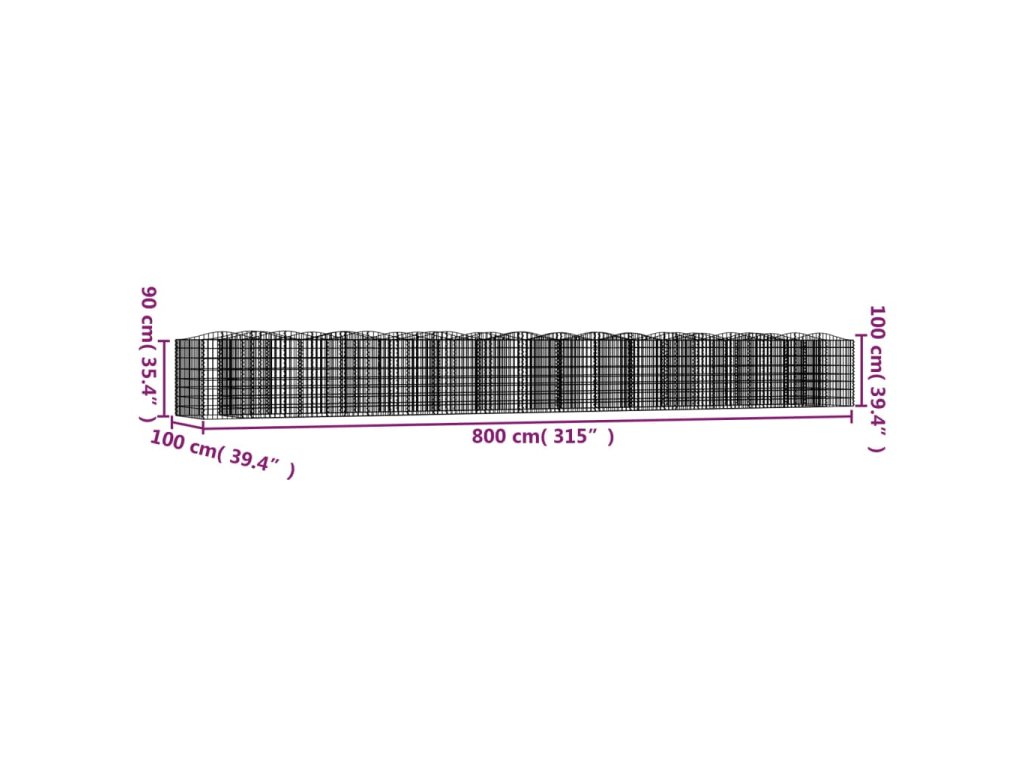 Klenutý gabion vyvýšený záhon 800x100x100 cm pozinkované železo 153557