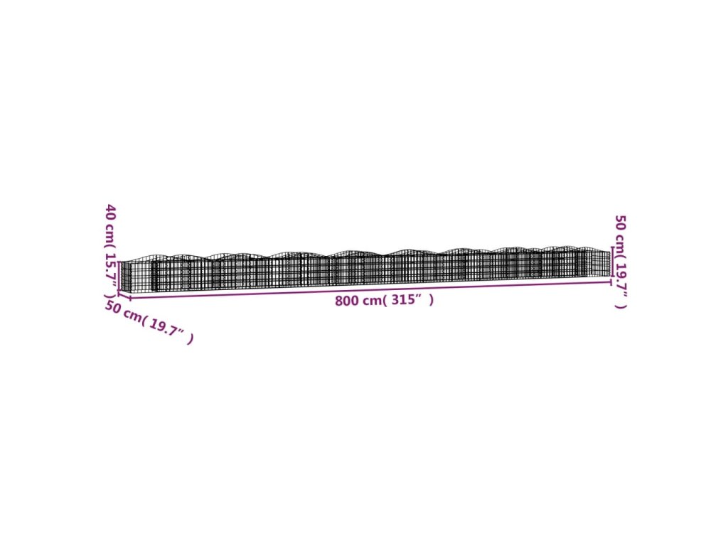 Klenutý gabion vyvýšený záhon 800x50x50 cm pozinkované železo 153545