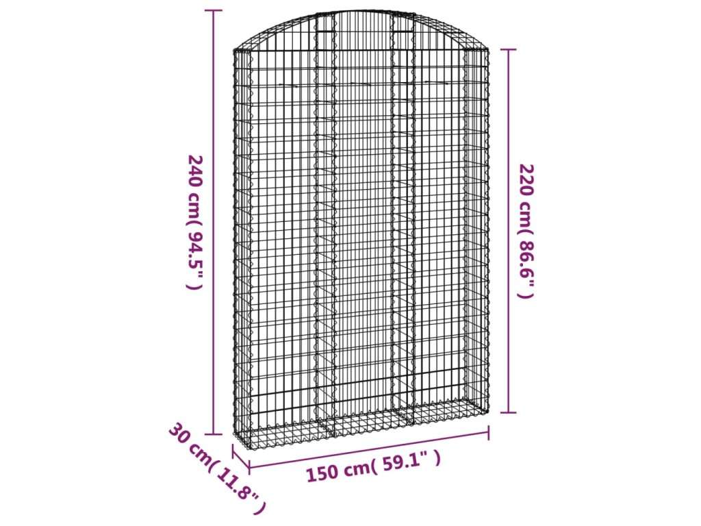 Klenutý gabionový koš 150 x 30 x 220/240 cm pozinkované železo 153451