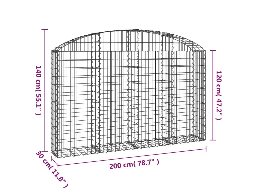 Klenutý gabionový koš 200 x 30 x 120/140 cm pozinkované železo 153466