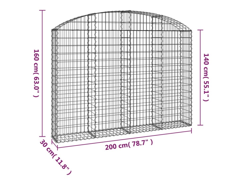 Klenutý gabionový koš 200 x 30 x 140/160 cm pozinkované železo 153467