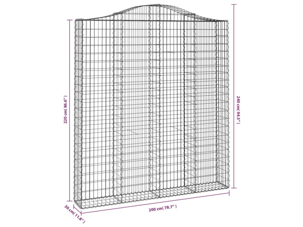 Klenutý gabionový koš 200 x 30 x 220/240 cm pozinkované železo 153391
