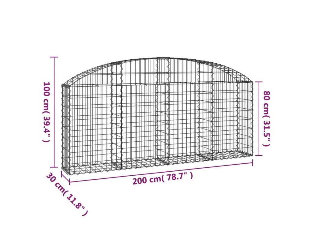 Klenutý gabionový koš 200 x 30 x 80/100 cm pozinkované železo 153464