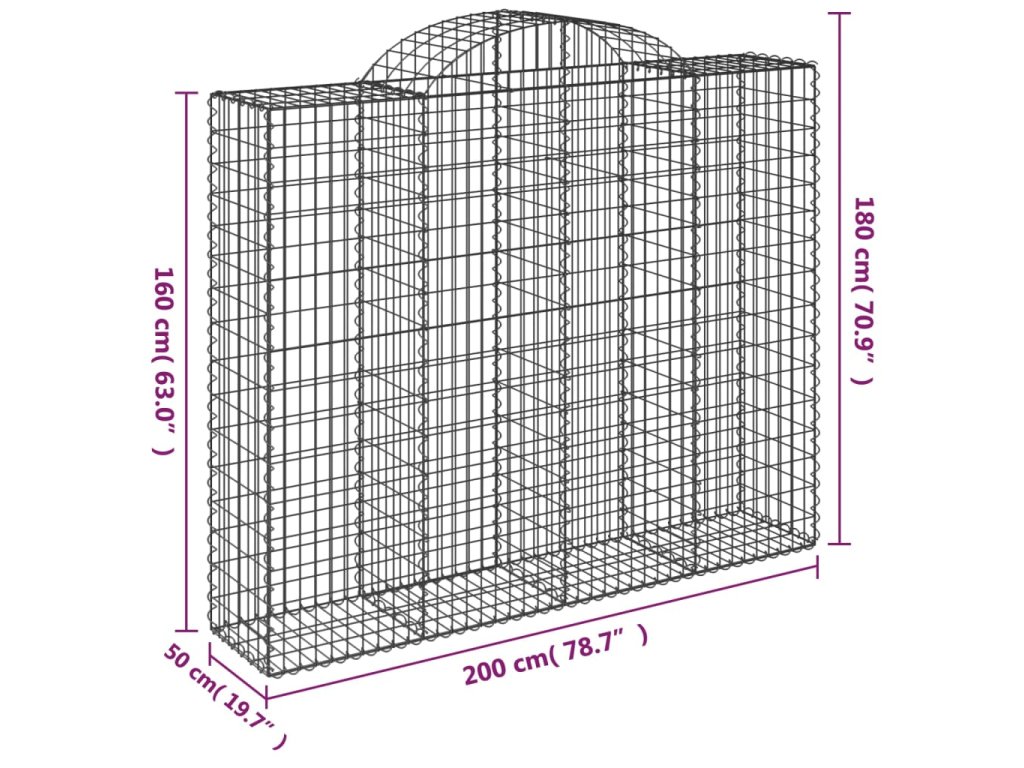 Klenutý gabionový koš 200 x 50 x 160/180 cm pozinkované železo 153498