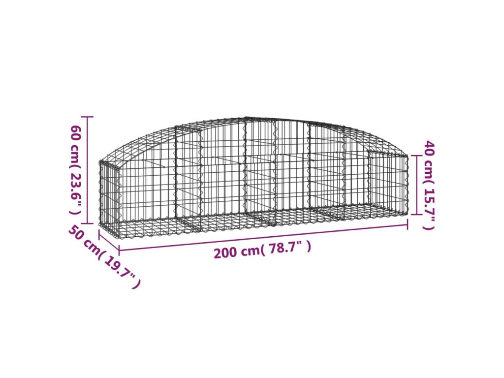 Klenutý gabionový koš 200 x 50 x 40/60 cm pozinkované železo 153472