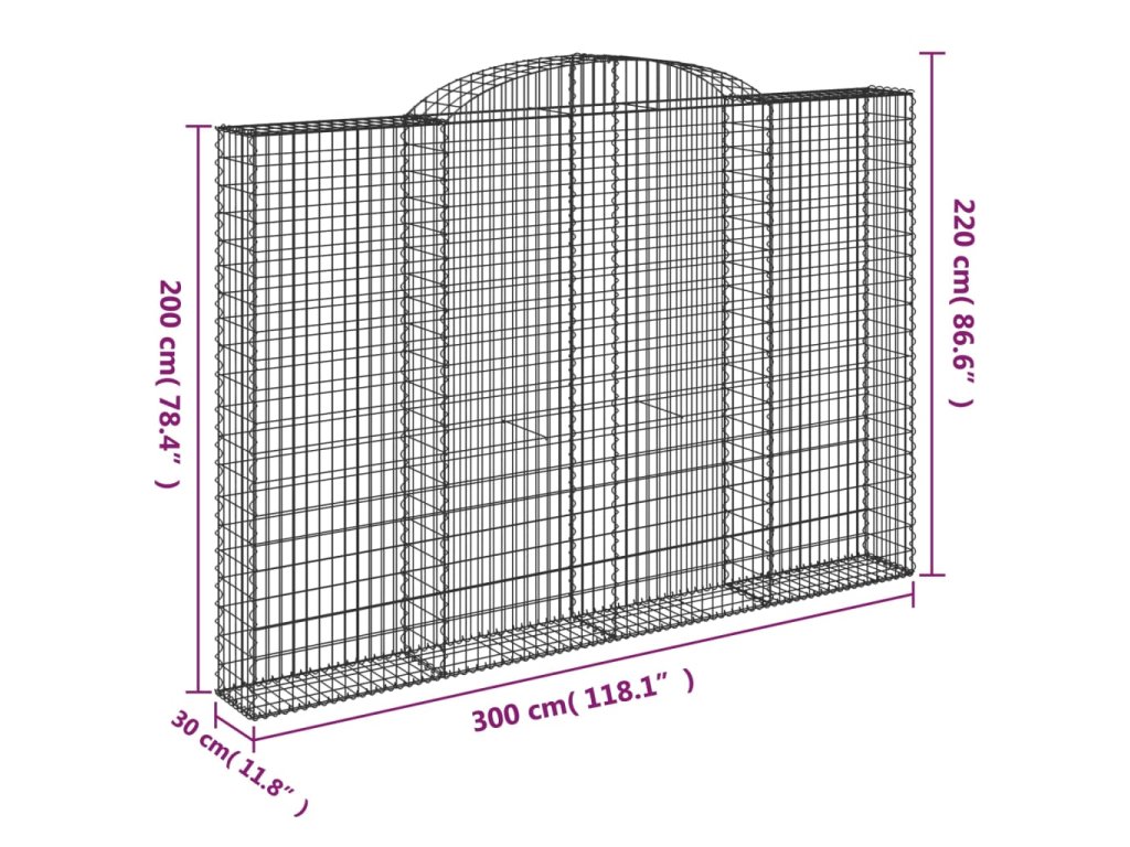 Klenutý gabionový koš 300 x 30 x 200/220 cm pozinkované železo 153510