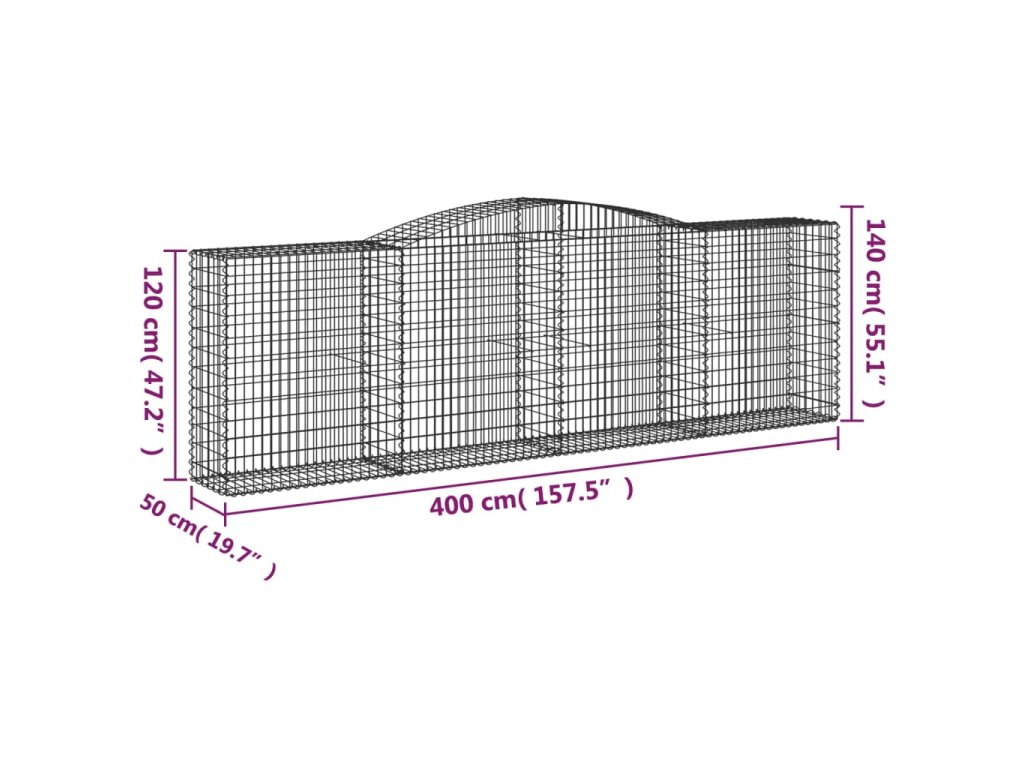 Klenutý gabionový koš 400 x 50 x 120/140 cm pozinkované železo 153536