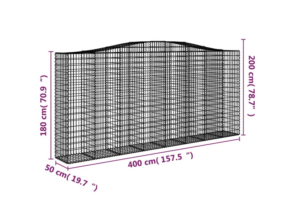 Klenutý gabionový koš 400 x 50 x 180/200 cm pozinkované železo 153419