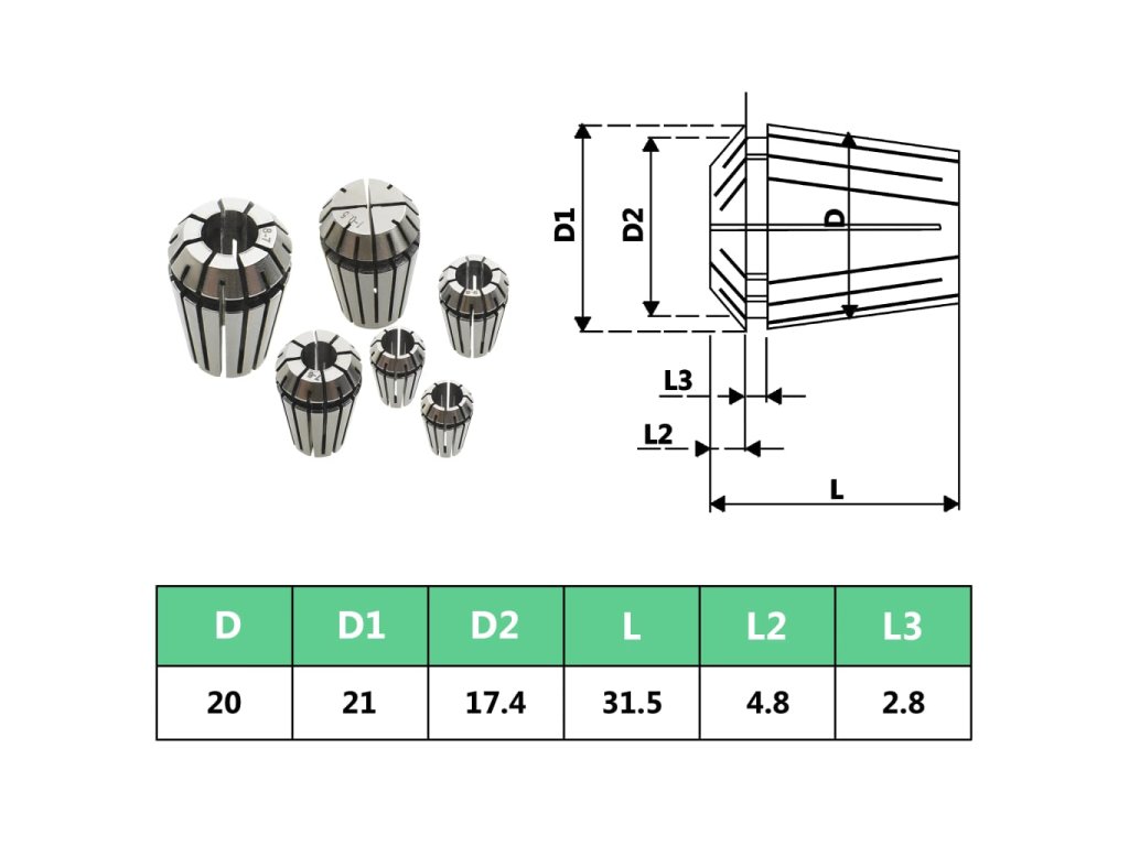 Tato sada 13 ks kleštin ER20 je vhodná pro vyvrtávání, frézování, vrtání, řezání závitů, gravírování, CNC, soustruhy a podobné práce. V sadě jsou kleštiny s upínacím rozsahem 1 mm až 13 mm.