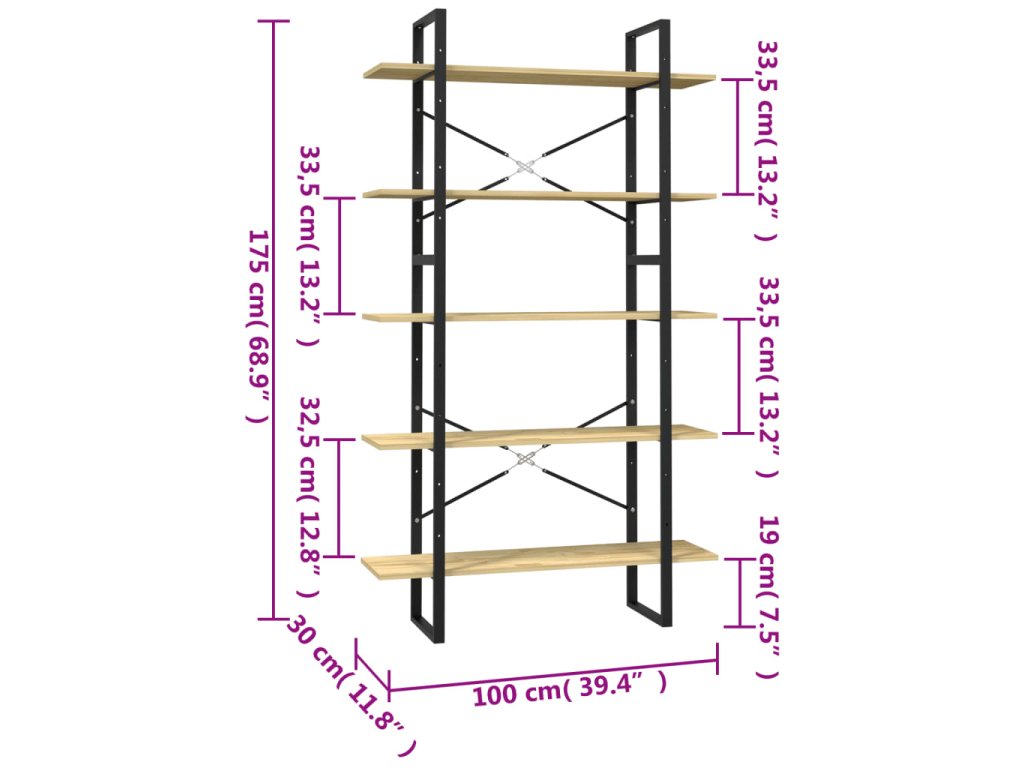 Knihovna s 5 policemi 100 x 30 x 175 cm borové dřevo 3082003
