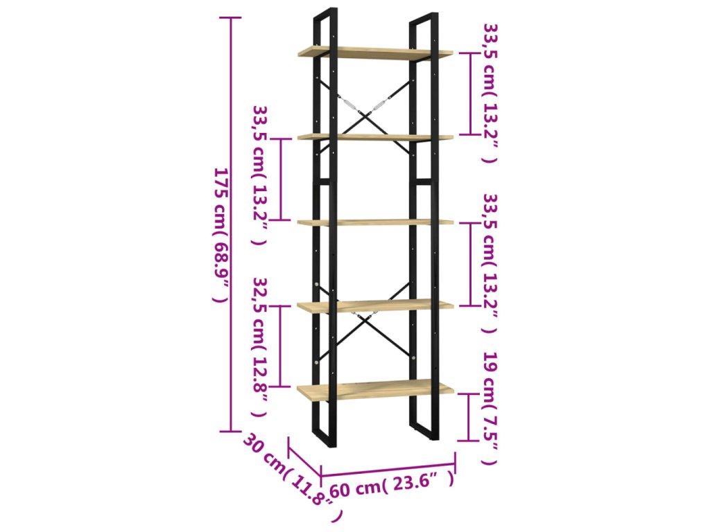 Knihovna s 5 policemi 60 x 30 x 175 cm borové dřevo 3081983