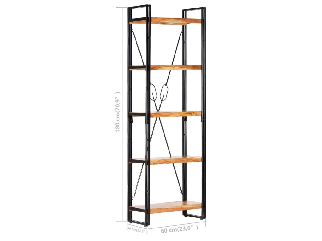 Knihovna s 5 policemi 60 x 30 x 180 cm masivní akáciové dřevo 286588
