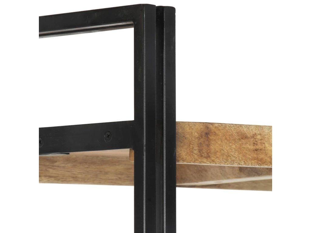 Knihovna má pevný ocelový rám s práškovým nástřikem, jenž jí dodává industriální vzhled. Poličky jsou vyrobeny z masivního hrubého mangovníkového dřeva, které je nejen pevné, odolné, ale zároveň i krásně vypadá. Jeho řemeslné zpracování mu navíc dodává velkolepý retro styl. Každý krok výrobního procesu je prováděn s největší péčí, ať už se jedná o leštění, natírání nebo lakování. Díky řemeslnému zpracování a překrásné kresbě dřeva je každý kus nábytku jedinečný a lehce se odlišuje od všech ostatních.