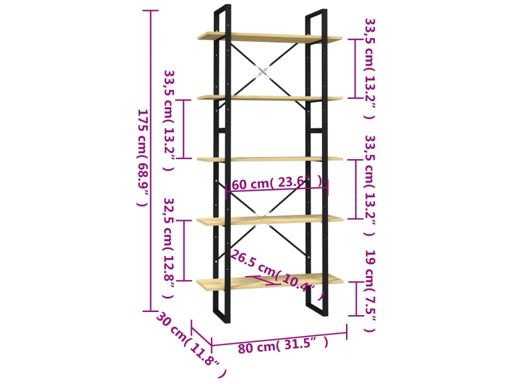 Knihovna s 5 policemi 80 x 30 x 175 cm borové dřevo 3081993