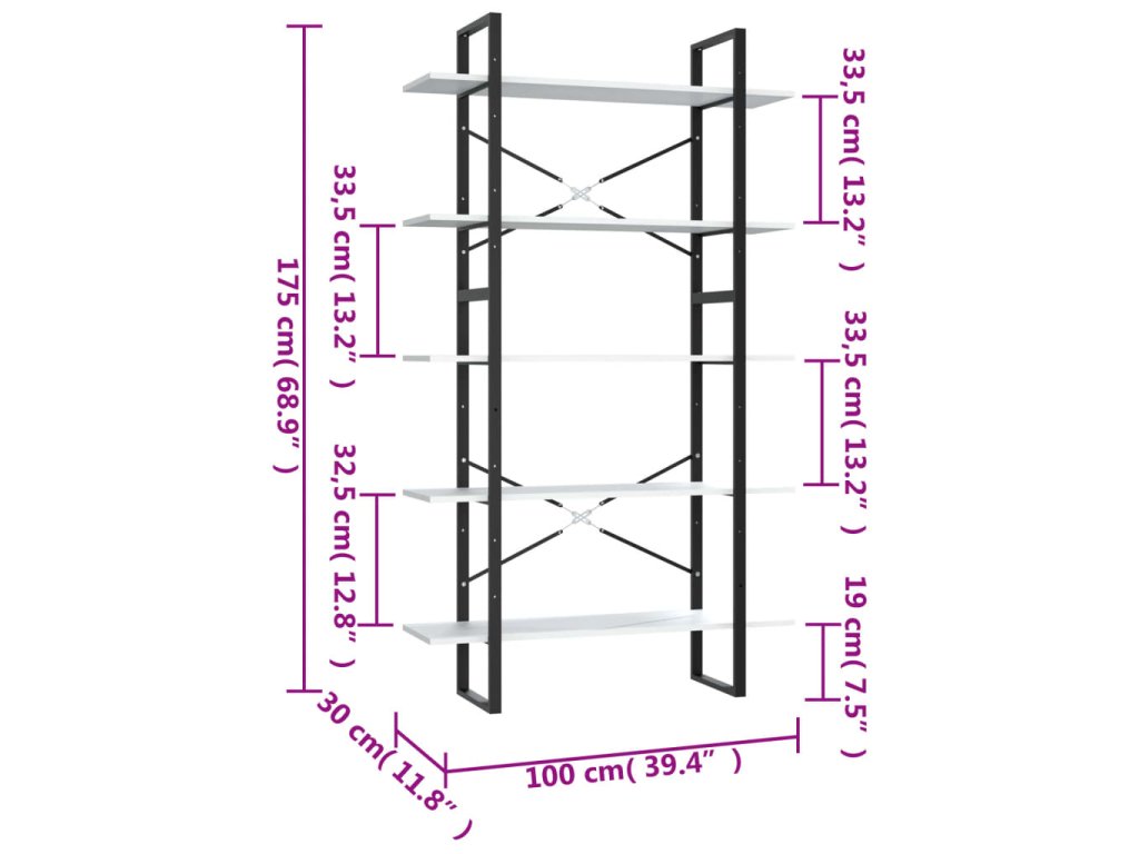 Knihovna s 5 policemi bílá 100 x 30 x 175 cm kompozitní dřevo 3081998