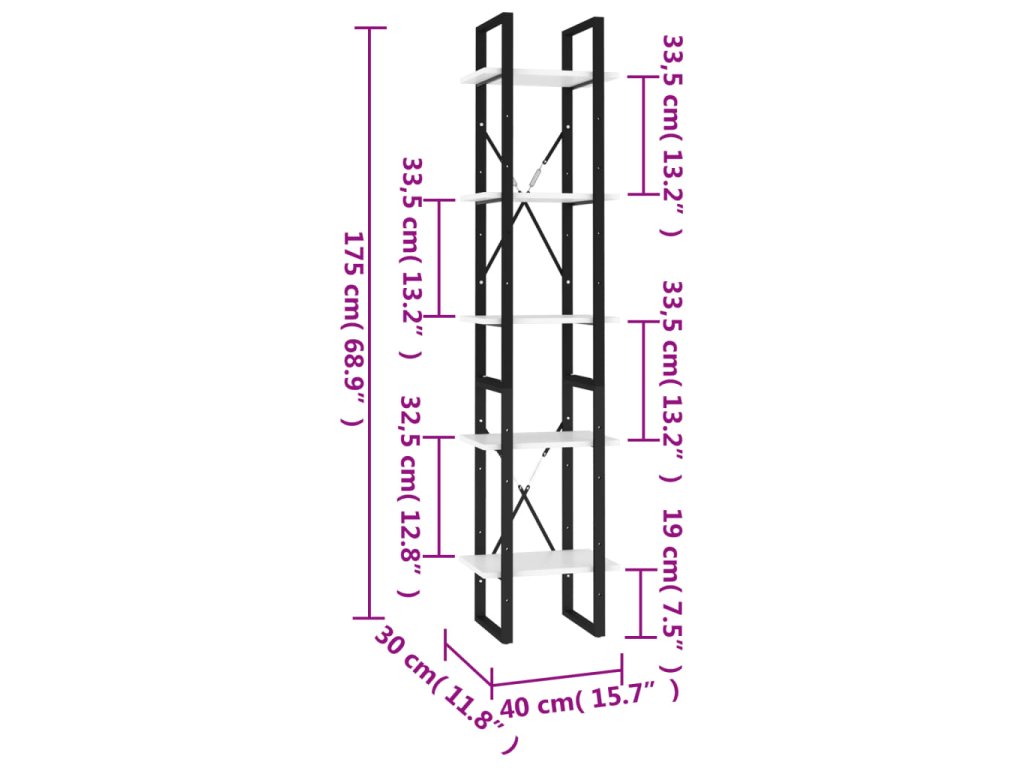 Knihovna s 5 policemi bílá 40 x 30 x 175 cm kompozitní dřevo 3081968
