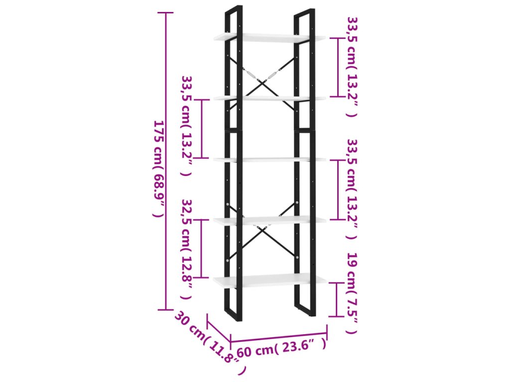 Knihovna s 5 policemi bílá 60 x 30 x 175 cm kompozitní dřevo 3081978