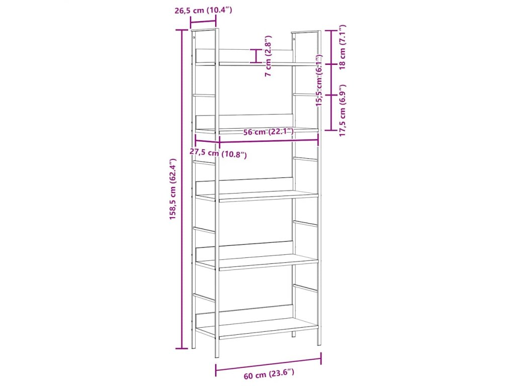 Regál je vyrobený z desek, takže ho snadno očistíte navlhčeným hadříkem. Robustní ocelová konstrukce nepodléhá rzi a působí industriálním dojmem. Celá knihovna má kompaktní design, který vám umožní maximálně využít omezený prostor. Pět polic nabízí spoustu místa, kde si můžete uložit a vystavit svou sbírku knih, květiny, CD, DVD a nejrůznější dekorativní předměty.