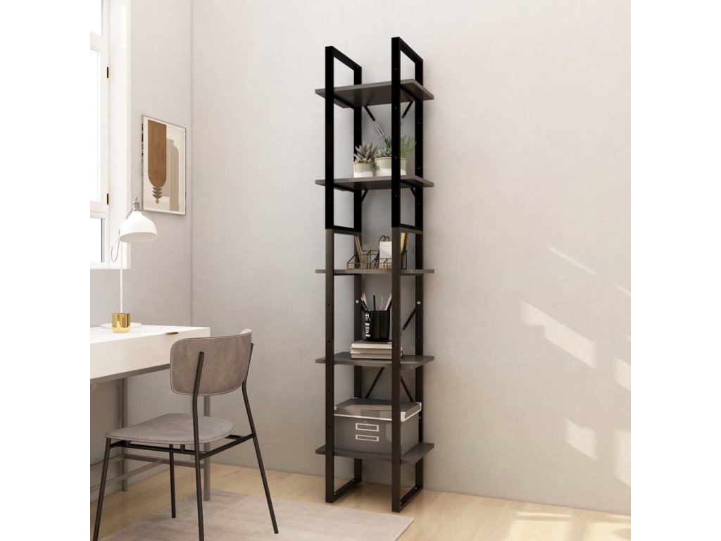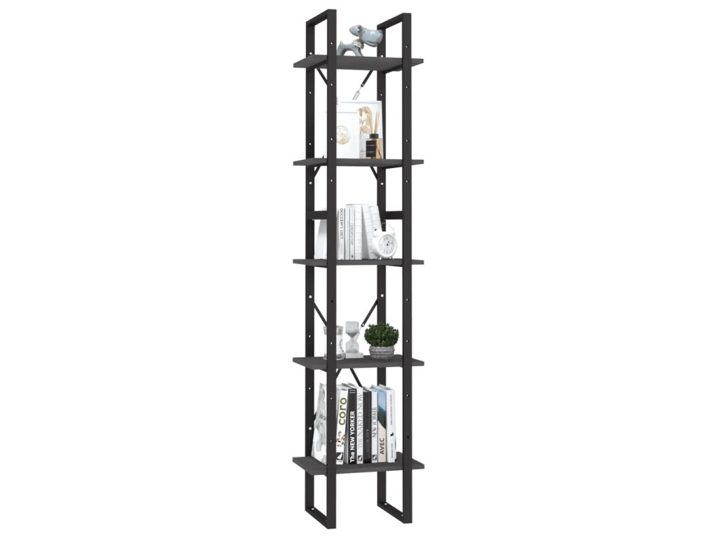Knihovna s 5 policemi šedá 40 x 30 x 175 cm borové dřevo 3081975