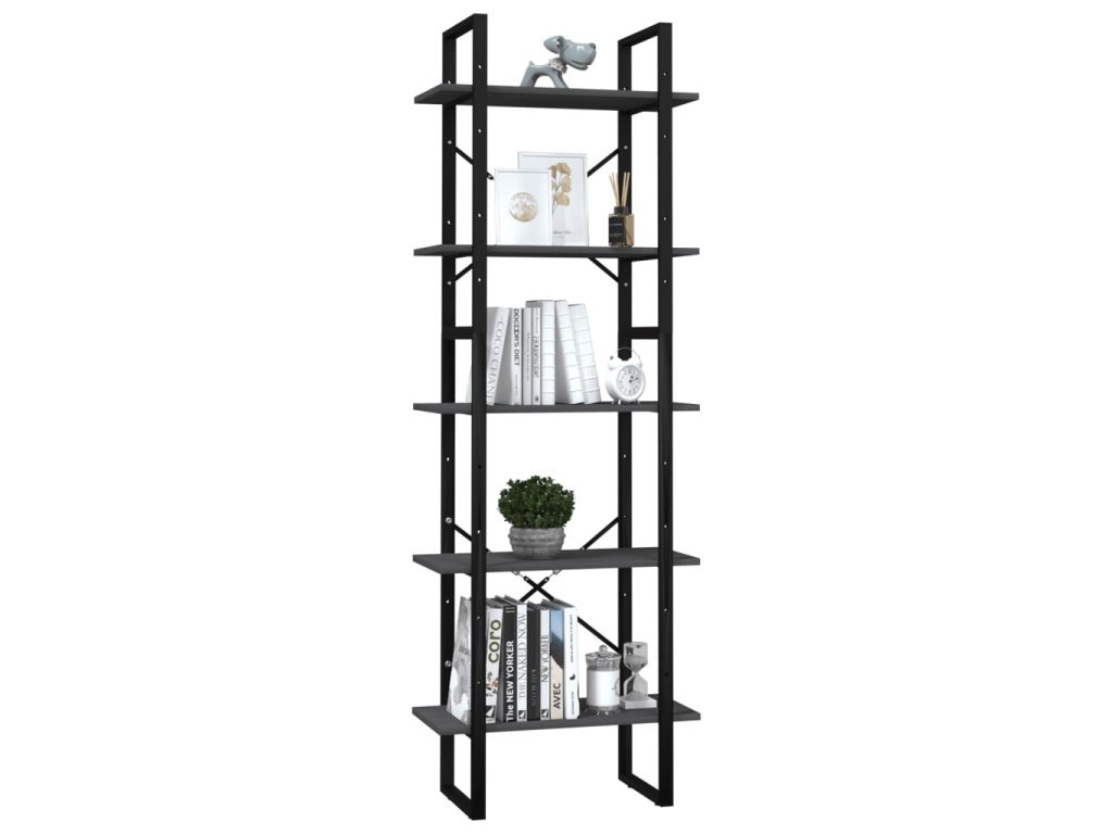 Knihovna s 5 policemi šedá 60 x 30 x 175 cm borové dřevo 3081985