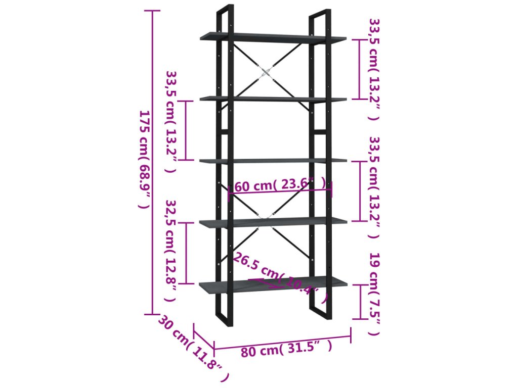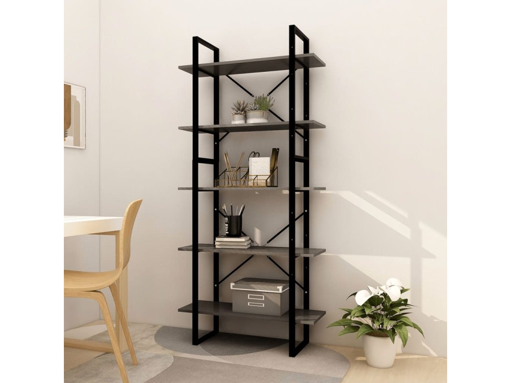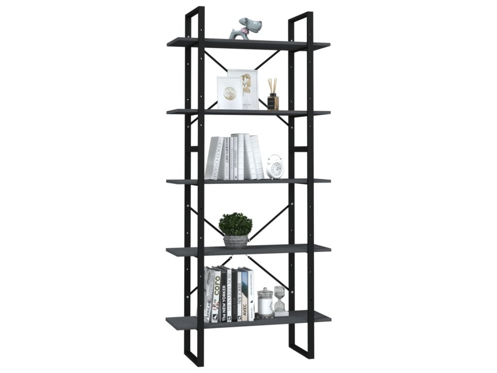 Knihovna s 5 policemi šedá 80 x 30 x 175 cm borové dřevo 3081995