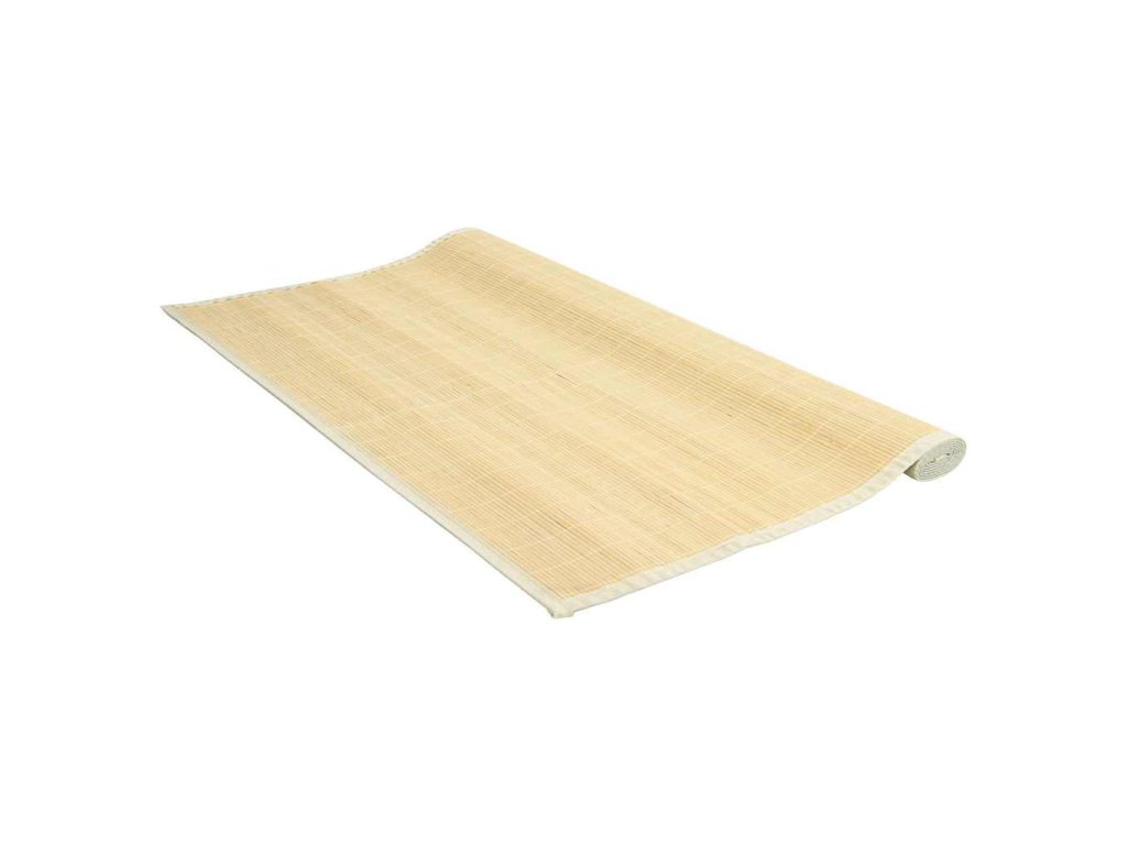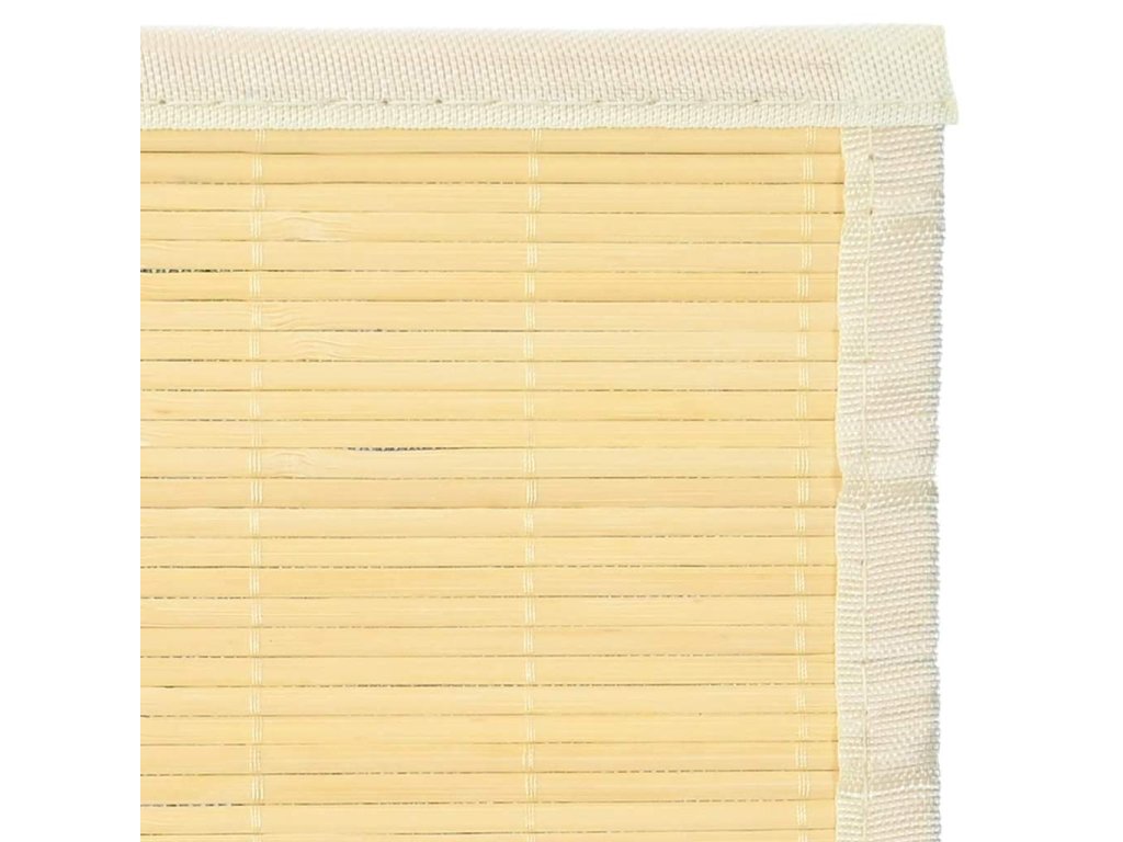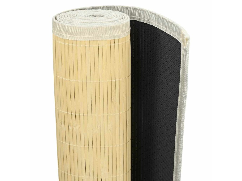 Spodní strana bambusového koberce je podložená neklouzavou PVC vrstvou, která poskytuje nejen vynikající tlumení, ale navíc udržuje koberec na místě. Polypropylenové okraje dodávají bambusové rohoži pečlivě dokončený vzhled. Koberec je vyrobený z přírodního pevného bambusu a snadno se čistí.