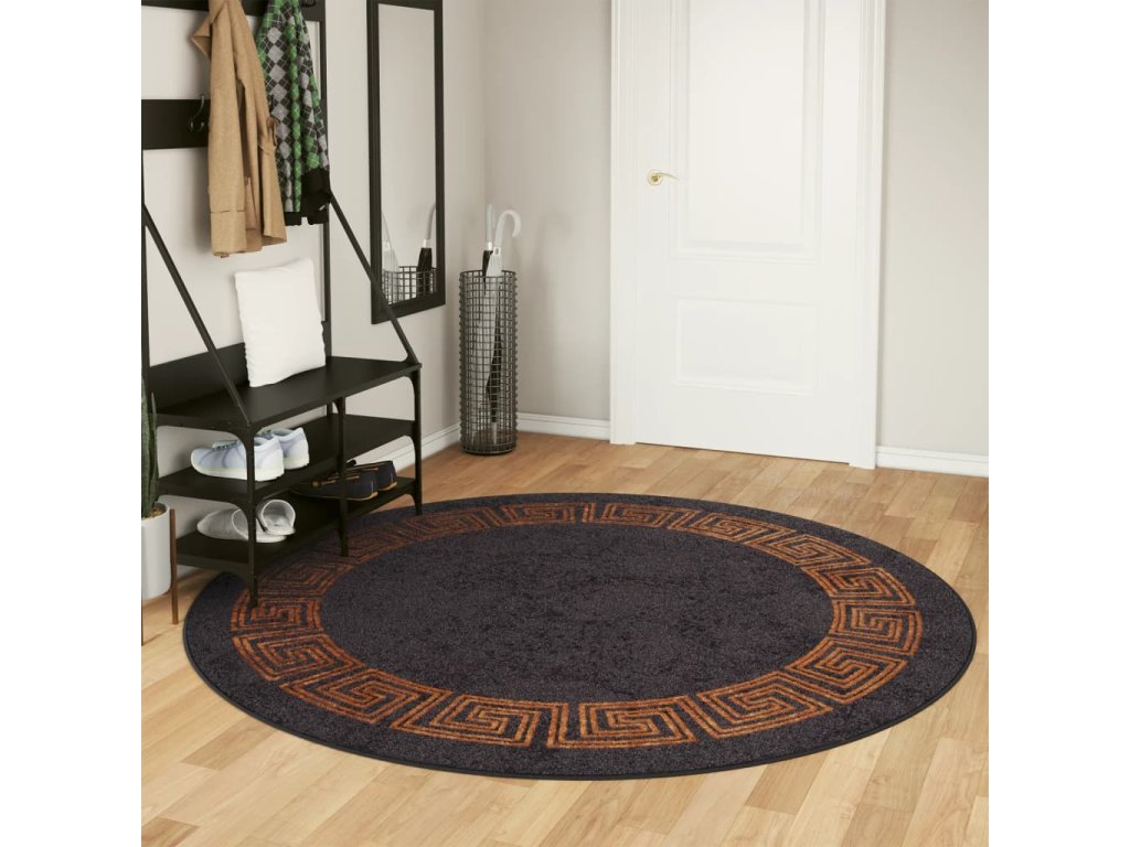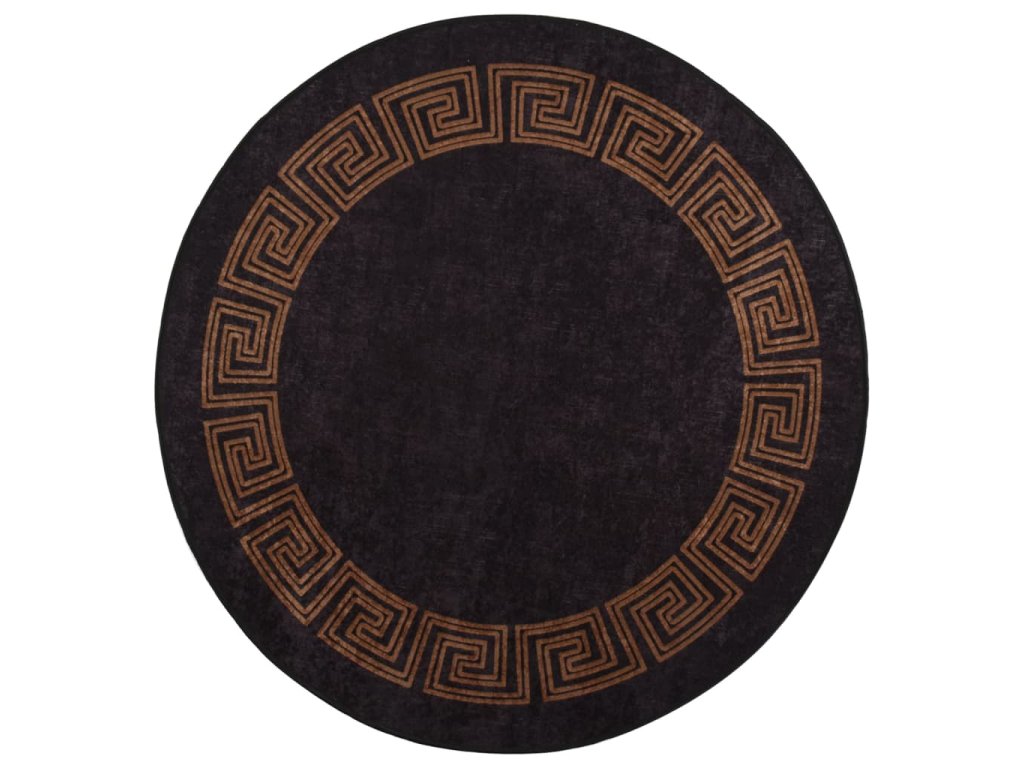 Koberec pratelný černý a zlatý Ø 200 cm protiskluzový 136630