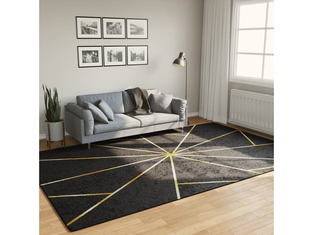 Koberec pratelný černý a zlatý 190 x 300 cm protiskluzový 136619