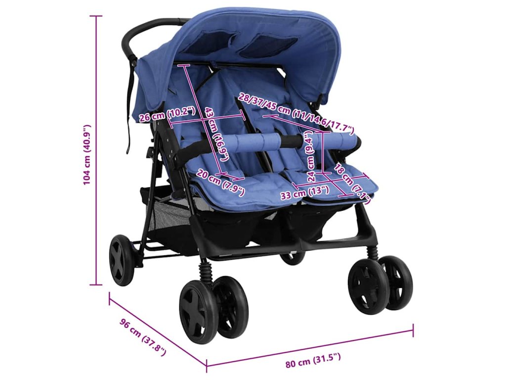 Kočárek pro dvojčata námořnická modř ocel 10344