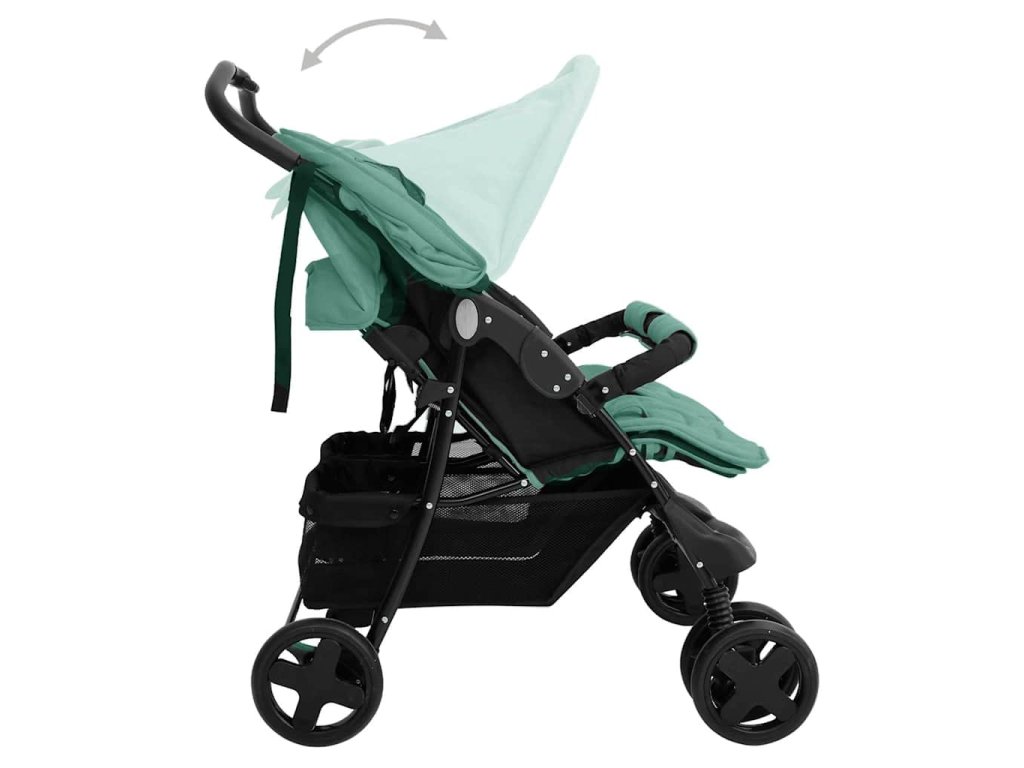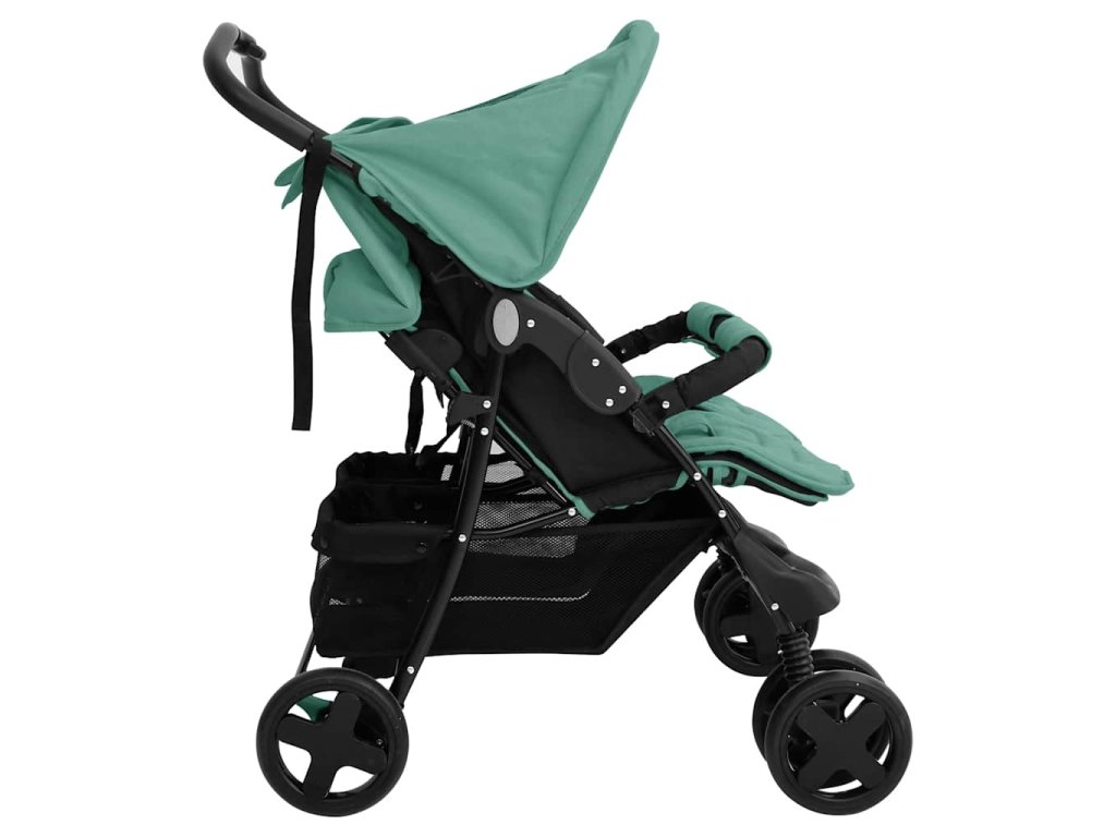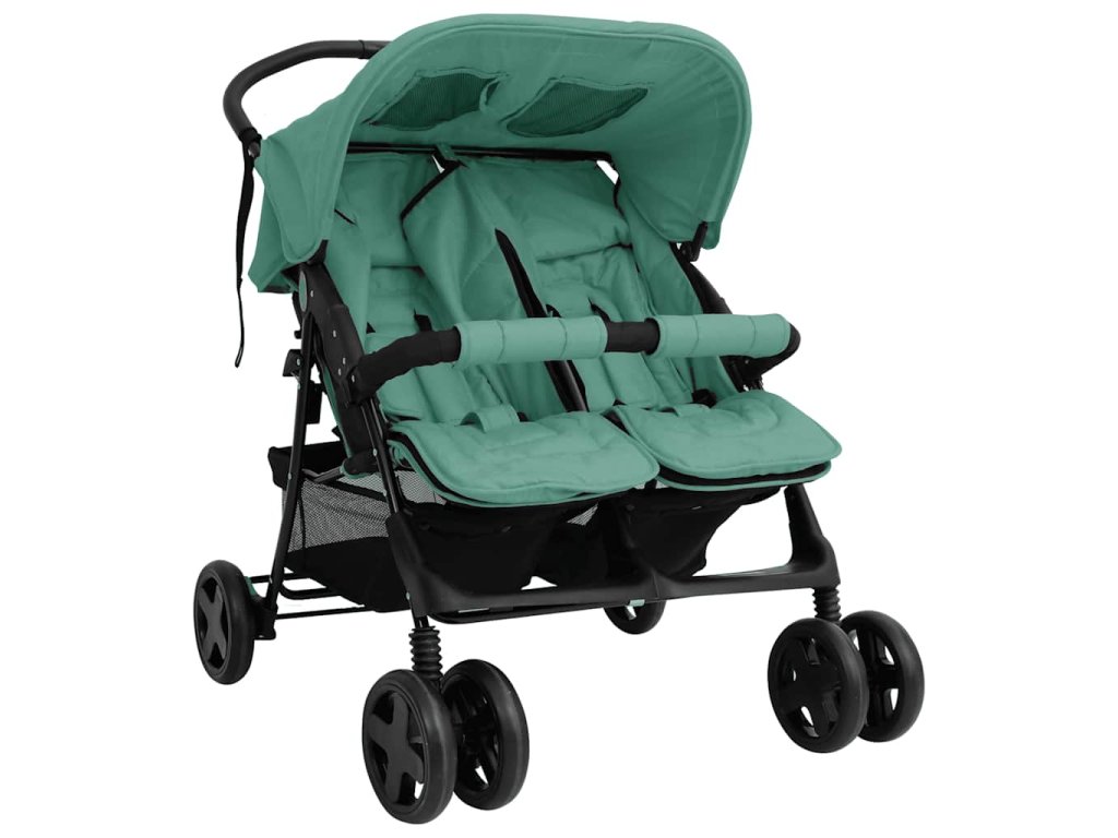 Kočárek pro dvojčata zelený ocel 10346