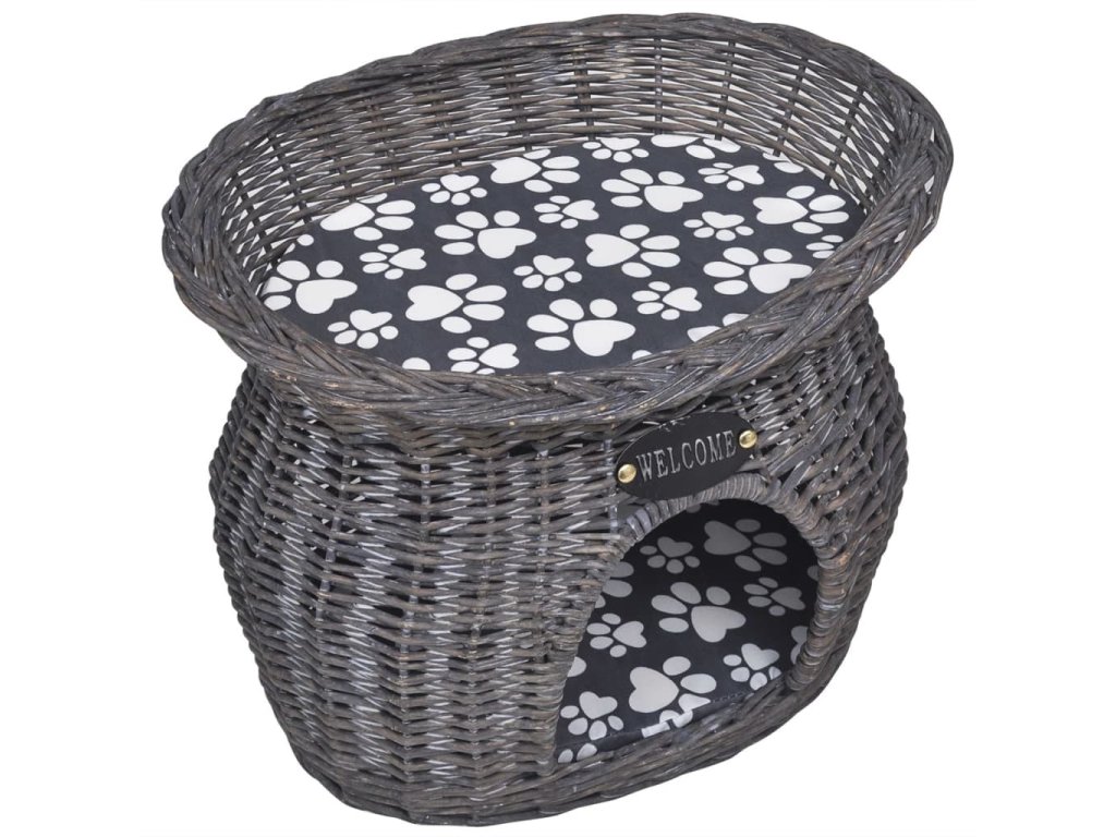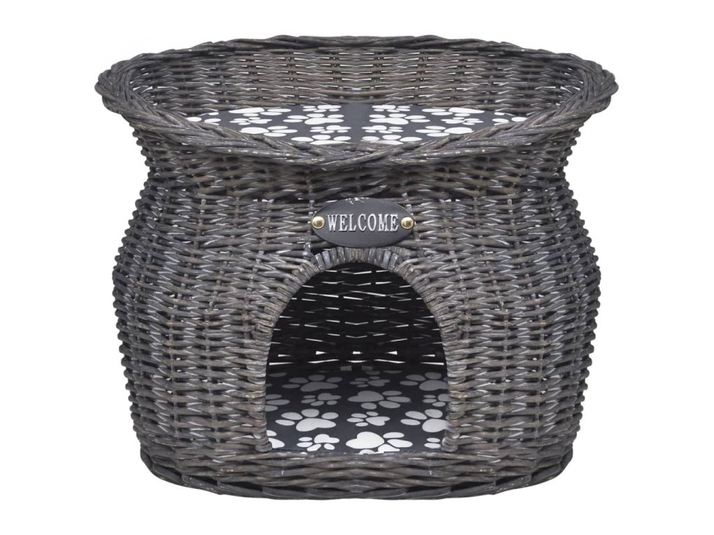 Je to extravagantní a vypracovaný proutěný kočičí pelíšek. Jeho součástí je silně polstrovaná měkká poduška, takže je opravdu útulný a pohodlný. Tento kočičí domeček je vyroben z vrbového proutí, je tedy bytelný, ale zároveň lehký, takže se dá snadno přenášet. Tento kočičí domeček můžete používat také venku, v zahradě nebo na terase, a to jak pro kočky a koťata, tak i pro psy a štěňata. Slouží ke spánku, odpočinku a hře. Vaši mazlíčci si budou užívat sluneční paprsky, když se budou slunit na jeho horní ploše!