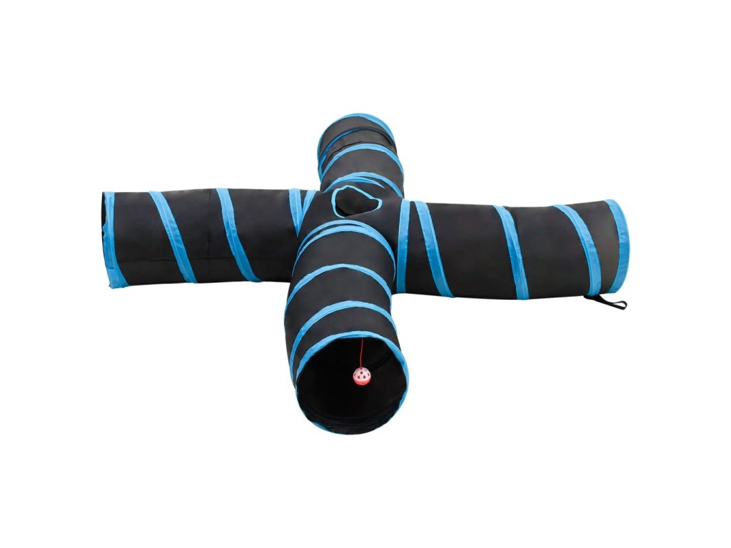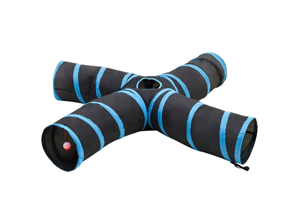 Kočičí tunel 4cestný černý a modrý 25 cm polyester 172187