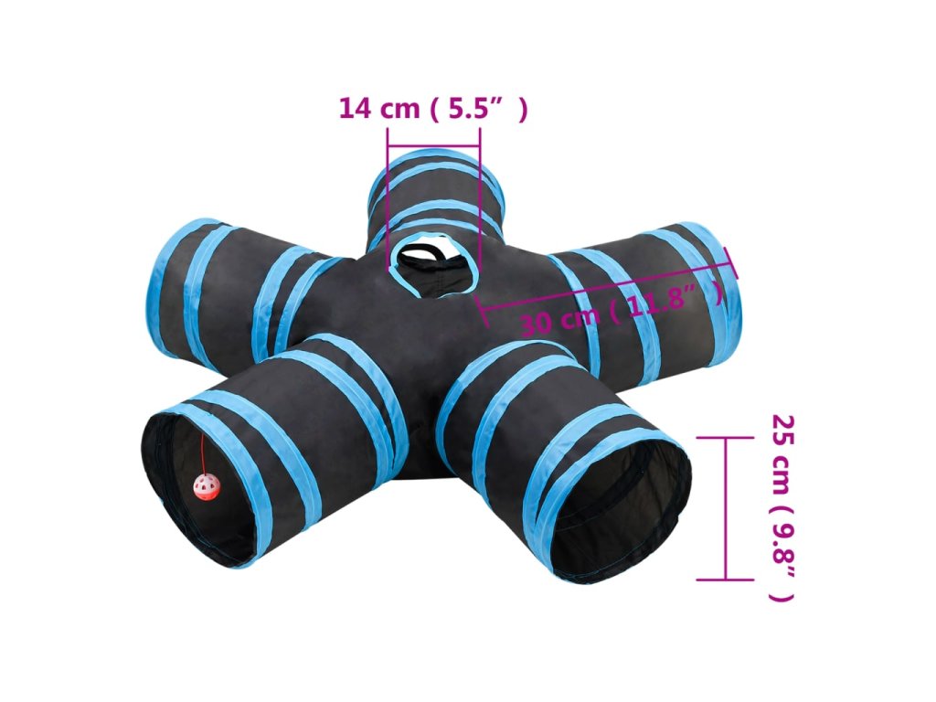 Kočičí tunel 5cestný černý a modrý 25 cm polyester 172184